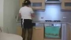 Esta velha gorda está limpando a cozinha quando chega o amigo do seu filho. Ele chega completamente nu e vai fazer tudo para exita-la.