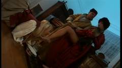 Estas duas belas gatas vestidas de romanas vão sugar os pés do imperador e, em seguida, fazer o mesmo com seu pênis em uma cena recriada de 1900.