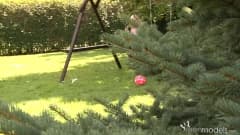 Aqui vemos uma jovem puta com um bichano tesudo está enfiando parte de um taco de beisebol dentro de si, ela fode-se no jardim até gozar!