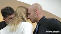Esses dois caras são muito bem dotado sexualmente e esta loira quer tentar esses paus em seu corpo, especialmente em sua boca em um ménage à trois.