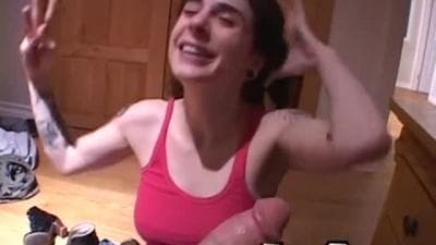 Desta vez vamos ver esta deliciosa gótica com tesão chupando um pau muito perto da câmera e, em seguida, sentando sobre ele para entrar na buceta...