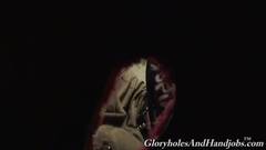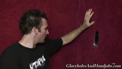 Esse cara nu está masturbando seu pênis enquanto chupa um outro pênis que sai do buraco na parede. Ele adora sexo oral e gosta muito de mamar...