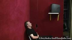 Esse cara está preparado para sentir todo o prazer do sexo oral com um pau que vem através da parede, e ele está ansioso para sugar até ao orgasmo!