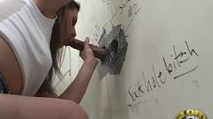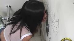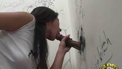 Este morena está olhando para a parede do prazer chupando galo preto desfrutando e mostrando-nos como ela é boa com sua língua!