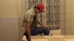 ![Jovem senta-se em um banheiro público para se masturbar Jovem senta-se em um banheiro público para se masturbar]()