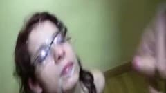 Um bom bukkake para uma mulher com oculos