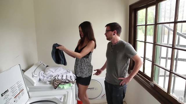 Jennifer Dark tem de lavar sua roupa, mas sempre tem algum tempo livre para sugar o pau desse homem que sempre volta por mais sexo com ela.