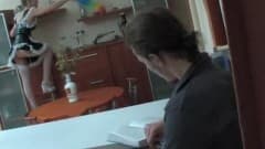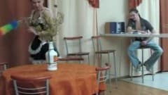 Temos aqui uma empregada de limpeza muito devota no seu trabalho mas não só é forte nesta área.