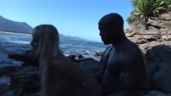 A mamas impressionantes que tem esta bela loira fazem as delícias desse negão que quer enfiar sua enorme rola na buceta dela ao ritmo das ondas...