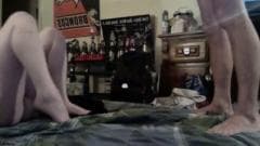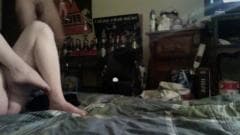 Este homem escova a buceta da namorado com a escova de dentes e como vibra ela vai ficar toda excitada. Depois, o namorado vai enfiar o seu cacete.