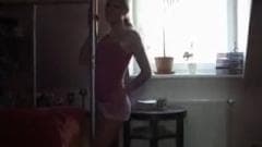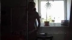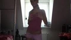 Para esta loira gata não há nada melhor do que passar uma tarde em casa exibindo seu belo corpo pra um amigo que a registra com sua câmera de vídeo.