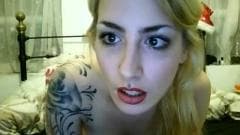 Esta loira tatuada passa o tempo se acariciando na frente da câmera para dar de presente pra você essa cena amadora de loucura, siririca e tesão!