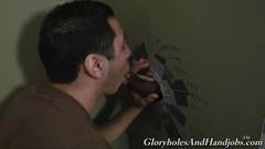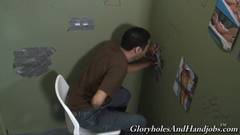 Esse cara fica feliz sempre que encontra um buraco em uma parede, porque ele sabe que provavelmente vai sair uma boa rola para ele mamar...