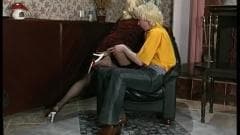 Este gay loiro acaricia com luxúria o corpo de seu amigo vestido de mulher, para o excitar muito e desfrutar de uma boa sessão de sexo com ele.