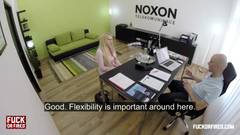 Ela não quer perder o emprego, e porque tem um corpo excitante, o chefe não vai deixar passar a oportunidade porque sempre a quis foder no escritório!