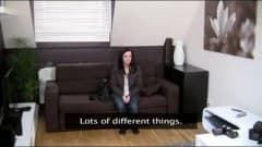 Durante esta peça pornográfica, esta morena está esperando um emprego. Mas este agente só quer transar com ela e pronto.