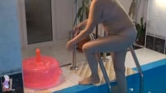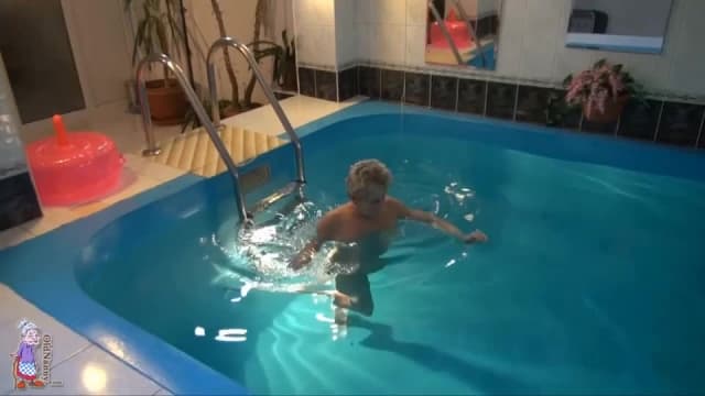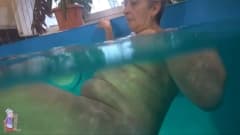Essa velha vovó quer lembrar dos seus belos dias de juventude e entra na piscina nua porque quer sentir a buceta borbulhar de tesão debaixo d'água...