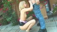 Esta cadela quer ser sodomizada pelo namorado e desfrutar de seu pênis ereto, mas não querem ir pra cama, eles preferem no pátio, ao ar livre.