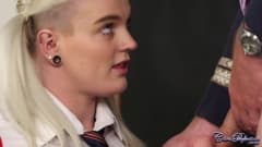 O professor levou essa loira safada para a sala de punição por ela ser tão atrevida, agora ela vai pagar um boquete de sonho para se redimir...
