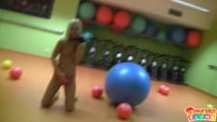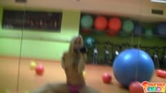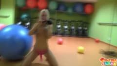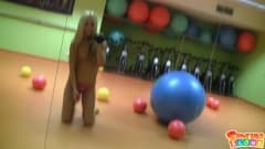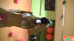 Ela gravou um show com sua câmera na frente de um espelho enquanto se masturbava quase nua, com a ajuda de um strap-on no ginásio. Não perca!