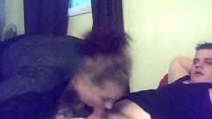 Este casal amador decidiu gravar um vídeo de um momento de sexo oral em casa. Ela sabe que seu namorado gosta que lhe chupem a rola sentado no sofá...