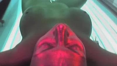 Esta mulher quer um aspeto bronzeado em seu corpo e é por isso que arrenda este solário por algumas horas para se masturbar e bronzear...