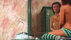 Esta jovem morena é mesmo muito sensual e tem um corpo invejável ! Aqui vamos nós para uma masturbação e um enfiar de dedos muito bom !