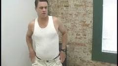 Este homem bonito sabe como fazer uma boa punheta até gozar em seu próprio peito, na frente das câmeras. Ele aprecia muito o seu próprio pênis...