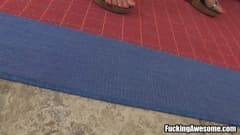 Ela é uma loira deliciosa que se desnuda para excitar o seu macho, chupando seu pénis para que fique bem duro e ereto e ejacular pra cima dela!