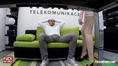 Esta cabra quer mesmo trabalhar para esta empresa e ela é capaz de foder com o director dos recursos humanos para poder ser tomada em consideração.
