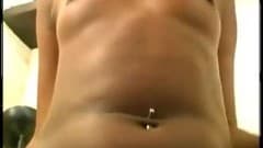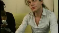 É a primeira vez que esta linda preta vai ser filmada para um porno.Ela fode esse cara branco no sofá em casa.