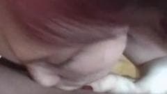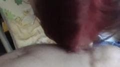 Uma ruiva mamando uma rola dura