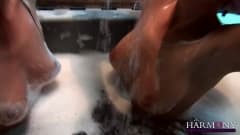 Confira essas duas atrizes pornô tomando banho juntas e molhando suas bucetas meladas e suas grandes bundas que resplandecem com o brilho da água...