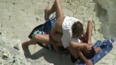 Este casal está a fazer praia. Estão com uma vontadinha para fazer sexo.