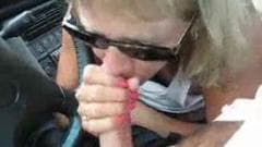 Esta loira preciosa aproveita que um amigo lhe deu uma carona no carro e vai chupar o pau dele até que fica duro como uma pedra!