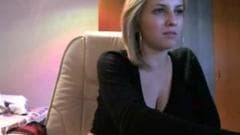 Esta loira nunca tinha feito isso antes mas hoje ele decide revelar seus seios pela webcam para que seus amigos possam todos assistir suas belas tetas