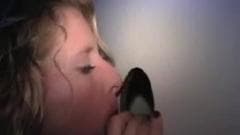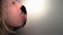 Não importa o tamanho do pênis que sai desse buraco na parede, esta mulher vai sugá-lo sem qualquer hesitação, ela vai a todas!