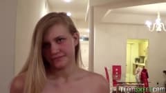 Loira gostosa vai sacudira as suas mamas antes de chupar o cacete do seu amante e ela vai acabar com o seu pénis na sua buceta molhadinha.