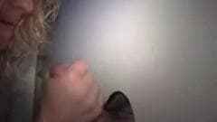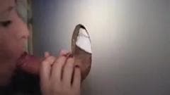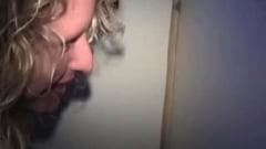 Você não vai acreditar no que vai ver neste cenário onde esta bela loira está ansioso para chupar o pau que vem saindo do buraco na parede...