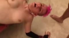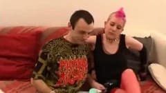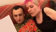 Esta menina punk com crista rosa vai fazer sexo com namorado.