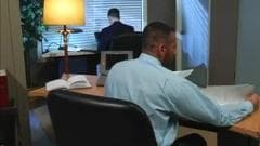Estes funcionários estão trabalhando mas já se faz tarde e precisam relaxar um pouco. Um deles começa a masturbar-se o que parece excitar o outro.