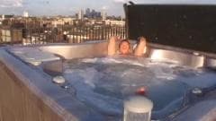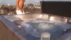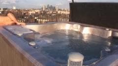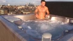 Este homem sarado quer passar a tarde se masturbando, pensando sobre suas aventuras sexuais e tocando uma punheta no jacuzzi ao ar livre.