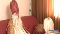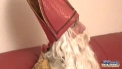 Ela queria ser fodida por um homem disfarçado e hoje ela encontrou um com um fato e barba falsa que a excita imenso.