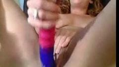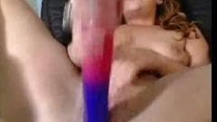 Esta mulher desempenha na frente da câmera do seu computador, e quer mostrar ao mundo como um vibrador gigante penetra seu bichano.