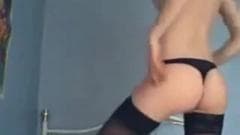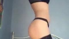 Ela é bailarina e gosta de dançar e hoje vestiu a sua linda lingerie sexy para mostrar depois ao namorado. que lindo rabinho tem ela.