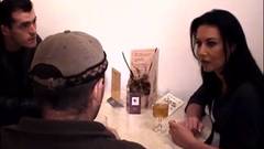 Esta menina gostosa adora ajudar os estrangeiros a encontrar o bom caminho e desta vez é a buceta dela que vai ser visitada por dois homens.