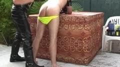 Neste vídeo terão direito a ver o dominador com o seu submisso. Acção no exterior a ser enrabado e com direito a broche !