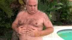 Este homem não é o mais sexy do mundo mas ele pega no seu pénis para masturbar-se.
