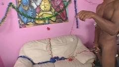 Este vídeo vai nos mostrar algo tão incrível como este magro Papai Noel negro. Encontra uma grande mulher negra para foder e desfrutar completamente