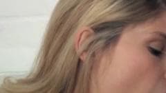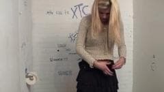 Ela coloca-se em frente ao gloryhole e fica ansiosa para o ver o que irá sair de lá. Ela tem esperança que seja um grande pau para desfrutar.